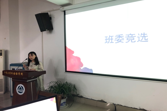 大会第二环节是班委竞选。此次班委竞选的职位包括班长、团支书、宣传委员、组织委员和心理委员等5个岗位,十余名同学们报名参加竞选。大家依次上台介绍自己参与竞选的原因、想法和担任班委的工作设想,表达了为班级同学热情服务的决心和愿望。会议结束后,所有同学进行线上匿名投票,选出班委。