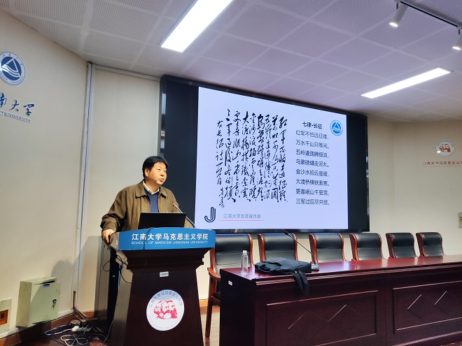 会议邀请了校党委常委、党委宣传部部长倪松涛作党史学习教育专题宣讲。倪部长以《长征精神》为题,厘清了关于长征的基本概念,分析了长征胜利的根本原因,挖掘了长征精神的基本内涵。他指出,长征精神是具有原创意义的民族精神,我们要弘扬伟大长征精神,在新的长征路上继续奋勇前进。宣讲使用了丰富鲜活的史实,加入了精辟深刻的分析,受到教师们的欢迎。