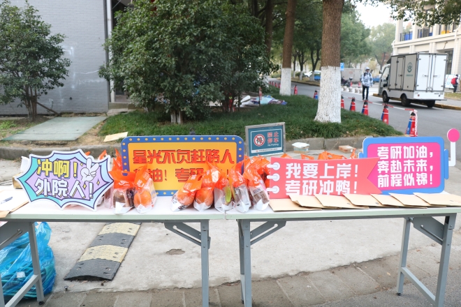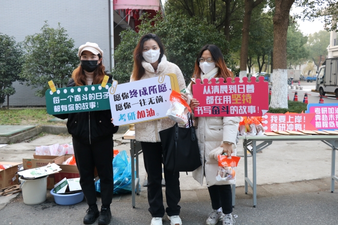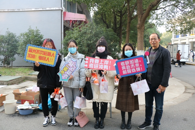 2021年全国硕士研究生招生考试即将到来,为增强江南在线学院2022届考研学子的自信心,表达学院对学子的关心和鼓励,12月15日早上7:30,在学生宿舍园区开展“寒冬送温暖,情系考研生”考研学子考前慰问活动。学院党委副书记刘伯贤、毕业年级辅导员苗文建及班主任代表参加了此次活动。