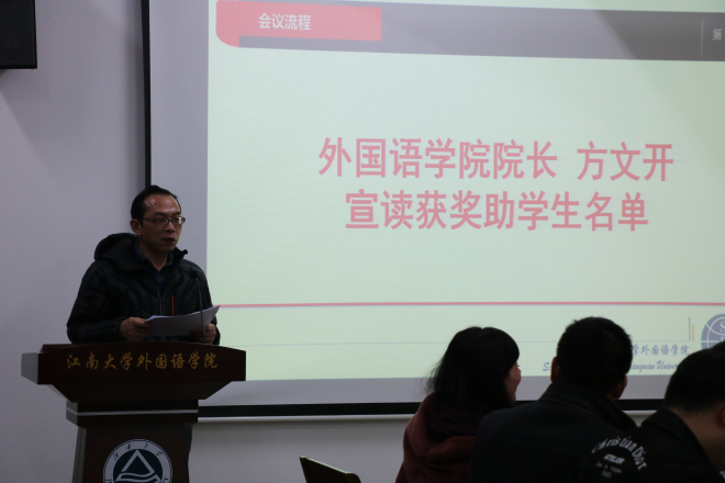 院长方文开宣读获奖助学生名单