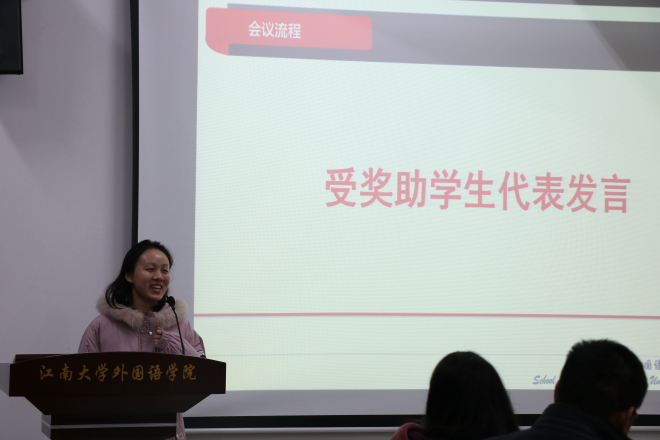 受助学生代表英语1703班林惠萍发言,首先表达了对艾菲斯医院管理有限公司的感谢,自己在今后的学习生活中将更加努力学习,发愤图强不负期望,用自己的实际行动感恩学院教育和爱心人士的关爱。英语1701王楚、日语1702邓宇瑄也进行现场发言,向各位爱心人士表达了感谢,同时分享自己学习情况。
