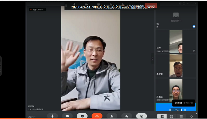4月24日中午,江南在线学院党委书记史志洪、院长方文开携班子成员一道,与在海外工作的教师们进行了视频连线。