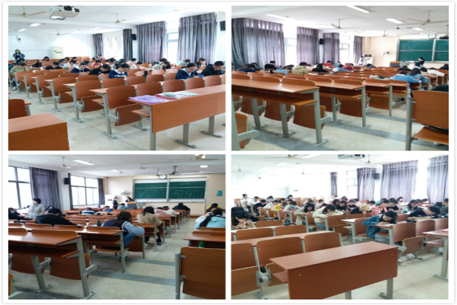 整场考试严格按照防疫预案,考生佩戴口罩进入教学楼前均进行体温测量,考场内放置了免洗消毒液,预留了隔离教室。为了保障本次竞赛顺利开展,学院也多次召开竞赛筹备工作会议。竞赛当天,学生工作处、教务处领导在学院党委书记史志洪、党委副书记刘伯贤的陪同下巡视了各考场情况。江南在线学院副院长顾琦一、副院长朱义华全程监控各考场动态,副院长谢竞贤监控听力效果。考务与监考老师分工明确、各司其职。由于提前做好了整个竞赛考试的准备工作,从而使考场防疫、试场安排、监考培训、试卷安保及运输、听力播放、考场监考、答卷回收、批改阅卷等各个环节得以规范有序进行。