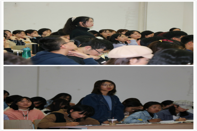 国奖获得者、保研至厦门大学的宁梓含从科研经历、实践经历、个人感想等方面分享了自己学习经验。 “夯实基础,学以致用”、 “戒骄戒躁,潜心投入”、“脚踏实地,找准定位”是她送给现场学弟学妹的关键词。国奖获得者、保研至江南大学的冯小宸为大家分享了自己的成长经历。她说要明确自己的方向、多去尝试,才能找到最适合自己的学习步调。课后充分利用碎片化时间,多和同学老师对话练习、纠正语音语调、加强日语听力练习。