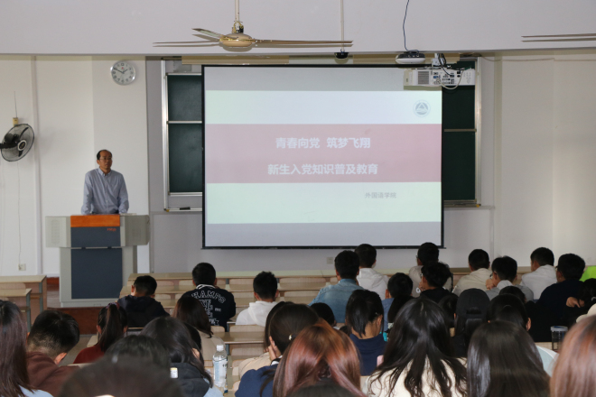 为增进新生对党的基本知识的理解和认识,提升新生的政治思想觉悟,进一步引导全院新生正确看待入党问题,详细了解入党流程。11月11日下午13:30,“青春向党,筑梦飞翔”新生入党知识普及教育在二教2D306举行,江南在线学院党委副书记刘伯贤作为主讲嘉宾出席会议,学院2020级新生参加本次会议。