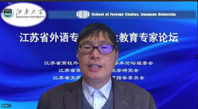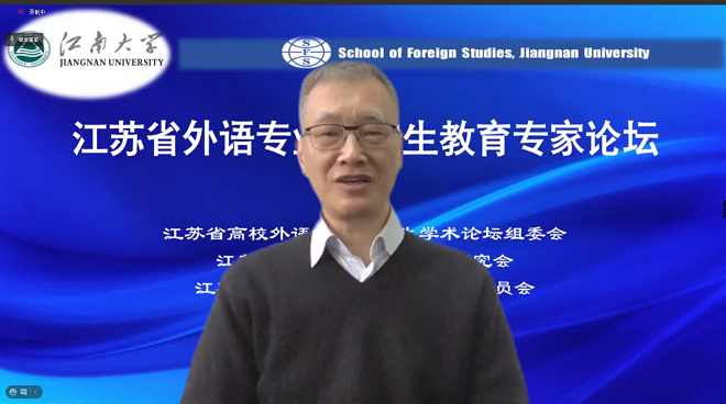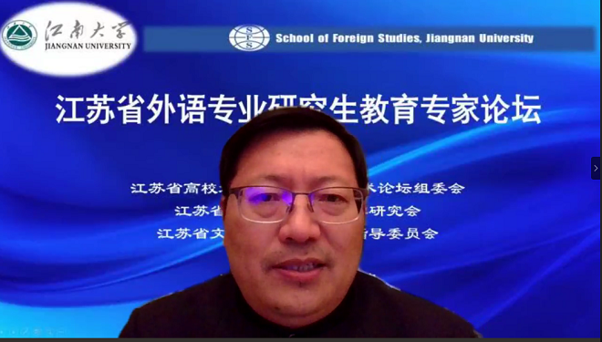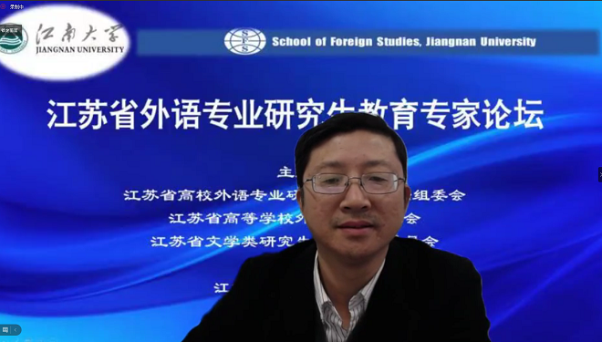 11月25日下午13:30,“江苏省外语专业研究生教育专家论坛”在我校江南在线学院成功举办。本次论坛由江苏省高校外语专业研究生学术论坛组委会、江苏省高等学校外语教学研究会、江苏省文学类研究生教育指导委员会主办,由我院承办。论坛采用线上线下相结合的方式,线下参会地点在文科楼A349,线上通过腾讯会议平台进行直播。