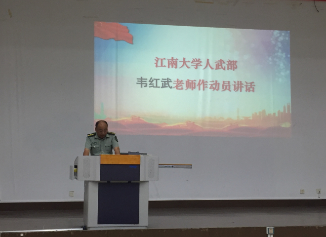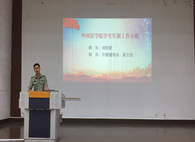 江南在线学院2019级新生军训动员大会于2019年9月1日上午8:30在第一教学楼1C109举行。学校人武部军事训练科科长韦红武老师,江南在线学院党委副书记、副院长刘伯贤老师,19级新生辅导员苗文建老师,18级军训优秀学员以及19级全体新生参加会议。本次大会由辅导员苗文建老师主持。