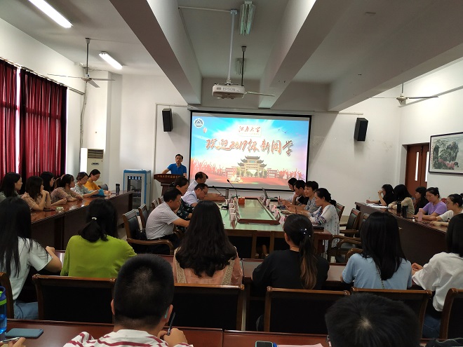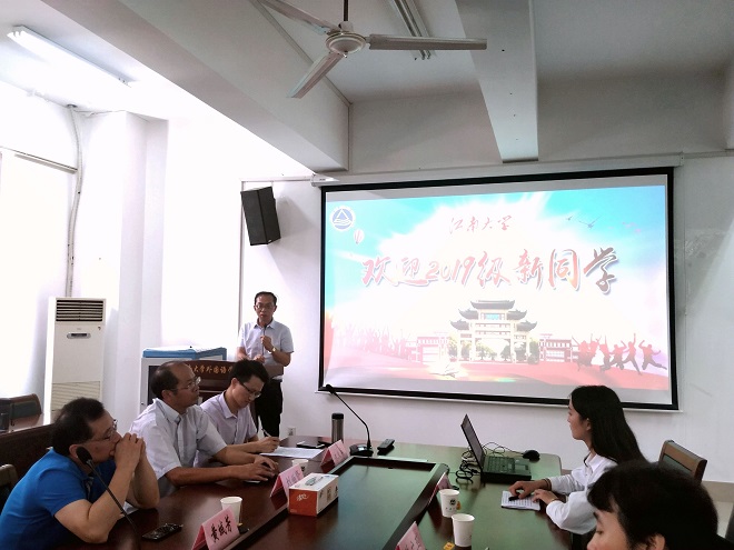 9月6日下午,江南在线学院2019级英语语言文学专业研究生新生见面会暨入学教育活动在文科楼A349会议室成功举行。出席本次会议的有江南在线学院党委黄城芳书记、方文开院长、刘伯贤副书记、施惠平副院长、朱义华副院长、教师代表王金安教授、院行政办公室主任华芒老师,院党委秘书许广玉老师与研究生辅导员杨艳老师,研究生老生代表2017级吴佳同学和2019级全体新生,朱义华副院长主持了本次活动。