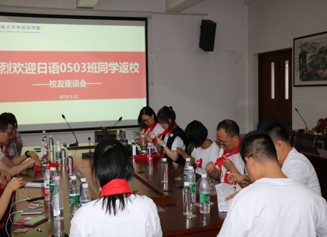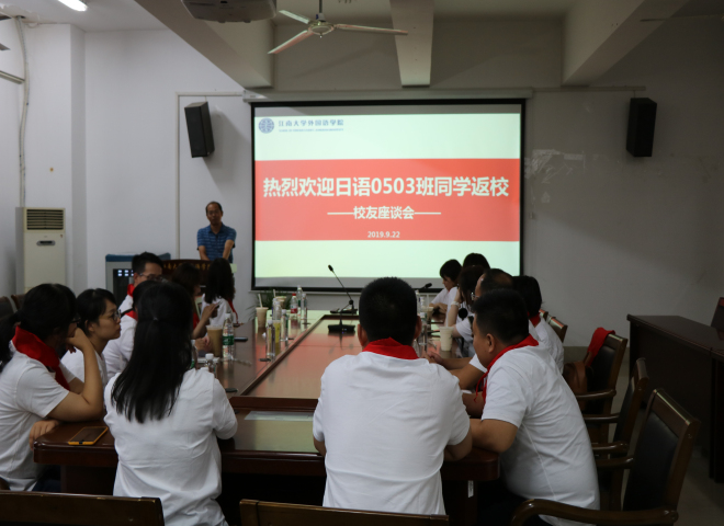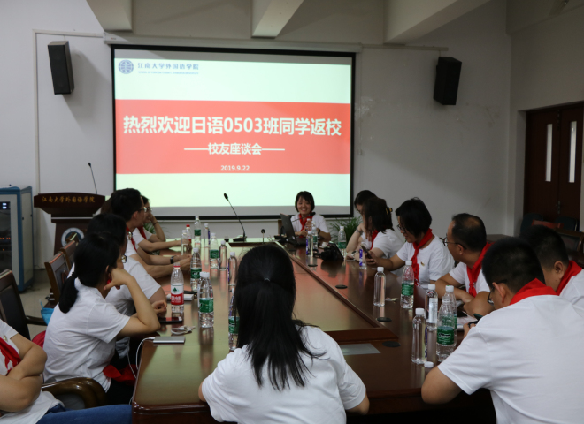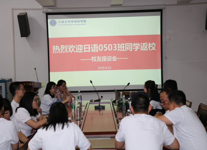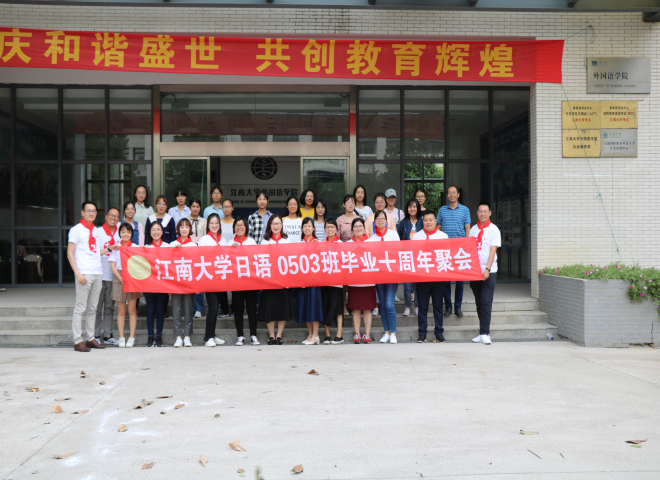9月22日,日语专业0503班同学从各地返回母校,齐聚江南在线学院A349会议室,共叙同学情谊,畅谈精彩人生。江南在线学院党委副书记、副院长刘伯贤、学工办老师苗文建以及十多位校友欢聚一堂,纪念毕业十周年。