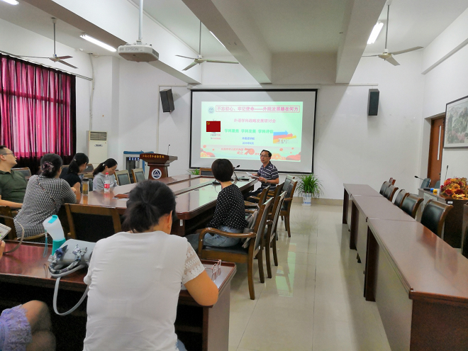 为结合外语学科实际开展“不忘初心、牢记使命”主题教育,全面落实江南大学第四次党代会精神与江南大学2019年发展战略研讨会精神,增强党性、提高能力,广开言路、改进作风,科学规划江南在线学院发展定位,全面推进学院各项工作发展,9月25-27日江南在线学院在文科楼A349举行了“不忘初心、牢记使命”主题教育之“外院发展路在何方暨外语学科发展战略研讨会”。学院全体教授、副教授,系部正副主任、支部正副书记,博士及青年教师代表分三场参加了教育活动与研讨会。