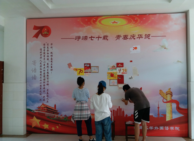 为隆重庆祝中华人民共和国成立70周年,大力弘扬以爱国主义为核心的伟大民族精神,深切感悟新中国70年风雨历程和伟大成就,进一步激发青年学生爱国之情,强化爱国之志,实践报国之行,江南在线学院在研究生、本科生各个班级中组织开展了国庆歌咏比赛、寄语祖国手卡制作、微视频作品等“青春告白祖国”系列活动。