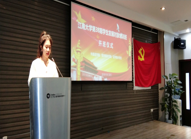 2019年9月28日上午,江南大学第38期学生发展对象培训班江南在线学院、数媒学院、法学院分党校开班仪式在数媒学院A116报告厅顺利举行。江南在线学院党委副书记、副院长刘伯贤,分团委书记杨艳,数媒学院分管党建工作辅导员王牧出席了本次开班仪式。