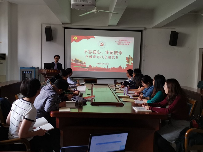 10月23日下午,英语系党支部全体党员在江南在线学院会议室参加了“不忘初心、牢记使命”主题教育系列党课学习活动。