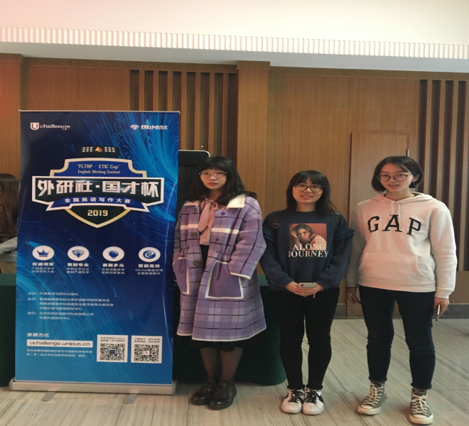 10月26日,2019“外研社国才杯”全国英语阅读大赛、写作大赛(江苏赛区)复赛分别在南京农业大学和南京林业大学落下帷幕。此次大赛,我校派出6名选手,由郑赛芬和宣泠老师带队,其中3名同学参加写作大赛与来自全省74所本科院校226名优秀选手同台竞技,3名同学参加阅读大赛与来自全省73所本科院校223名优秀选手进行切磋,最终5名同学凭借扎实的英语阅读基本功、丰富的知识量、突出的综合素质,斩获佳绩:江南在线学院英语16级本科生左铭瑶以江苏省第一名的成绩获得写作大赛一等奖,她将代表江苏省参加12月举行的全国赛;江南在线学院英语17级本科生童星如获写作大赛二等奖;化工学院19硕郑博文、江南在线学院18硕郝香玉斩获阅读大赛一等奖、江南在线学院英语17级本科生廖毓荷获阅读大赛二等奖。此次比赛我校学子能够在众多院校优秀学子的竞争中取得重大突破,展现了江南学子扎实的英语功底与水平。