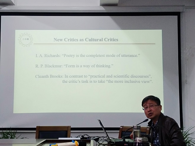 (殷企平教授在讲学中)
