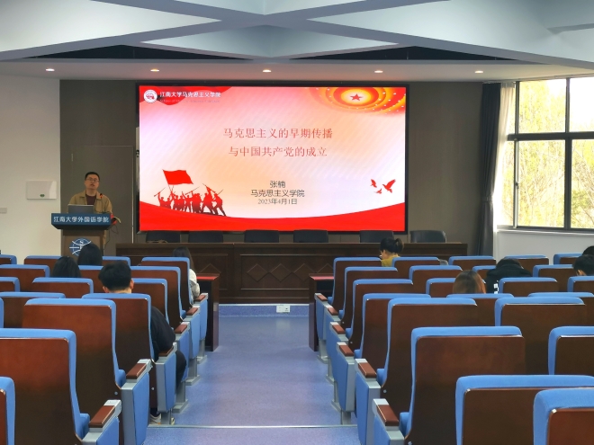 2023年4月1日上午,江南大学第45期学生发展对象培训班江南在线学院、人工智能与计算机学院、法学院分党校第二讲在江南在线学院楼B303君金报告厅顺利举行。马克思主义学院张楠老师为学员做专题授课,题目为《中国式现代化的百年探索理论与实践》。
