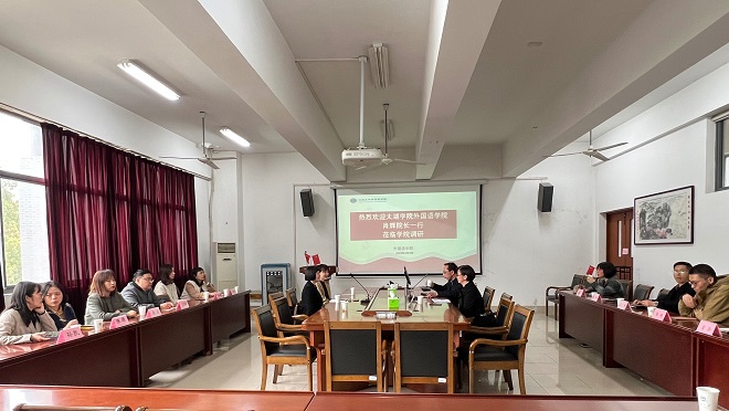 在英语专业建设方面,太湖学院吴洁老师提出了英语专业发展和教师发展的问题。我院英语系主任孙志祥教授阐释了“三合一融合发展”人才培养理念、学院鼓励教师发挥所长的举措以及毕业论文指导工作的方法与成效。在日语专业建设方面,太湖学院于甜甜老师提出了论文选题的难点问题。我院日语系主任张鹏教授介绍了通过课程设置、师生互动引导学生选题“质量为先”的具体做法。