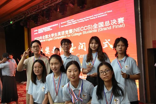 2023年全国大学生英语竞赛(NECCS)全国总决赛于2023年8月2日至7日在宁夏银川举行。在江南在线学院竞赛指导教师团队的悉心指导下,我校学子在比赛中充分发挥水平,再创新高,斩获了多个高级别奖项。在演讲比赛中,王妙然(英语2003)、王思嘉(国贸2103)获一等奖,高子涵(英语2003)、张圣岳(基地2201)、潘晨婕(工商2004)获二等奖,廖超(生硕2101)、饶姜未(产设2201)、唐威(土木2001)获三等奖,段嘉妮(国贸2102)、管志豪(金融2201)获优秀奖。在风采大赛中,潘晨婕、王思嘉、段嘉妮获三等奖。廖超同学还获得了辩论比赛二等奖及优秀主持人奖。