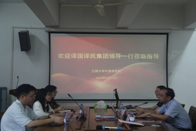院长方文开首先代表江南在线学院对译国译民集团领导一行的到访表示热烈欢迎。他从历史沿革、师资队伍、人才培养,学科建设、未来发展等方面介绍了江南在线学院基本情况,并提出校企合作诉求。译国译民集团总经理雷良琼也汇报了翻译行业现状、集团的发展历史、校企合作成果等。随后,译国译民集团校企合作经理蔡舒超介绍了公司专家顾问团队、育人项目、师资研修班、校企专业课程共建、学生实习与就业等校企合作的具体内容。
