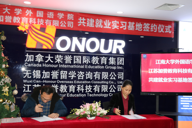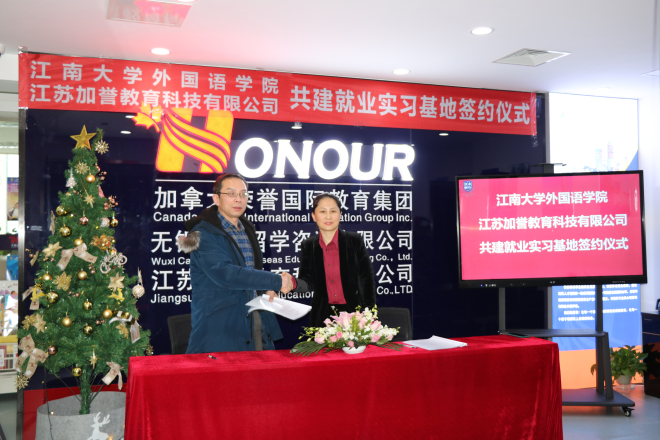 2021年1月4日下午2:30,我院与江苏加誉教育科技有限公司共建学生实习基地签约仪式在江苏加誉教育科技有限公司会议室举行。学院院长方文开、党委副书记刘伯贤、副院长朱义华、江苏教育科技有限公司总经理孟丽敏、副总经理肖莉、教育专家Richard博士、教学总监Ruby老师参加了签约仪式。