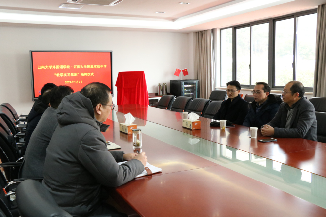 接着,江南在线学院院长方文开介绍学院的整体情况。方院长说:教学实习基地的建立,既能提高江南在线学院的人才培养质量,又能推动基础教育的发展。此次教学实习基地的建立不仅为我院学生人才培养搭建了平台,而且也是高等教育与基础教育相结合的有益尝试。学院将借助江南外语研究中心积极推动无锡教育的发展。