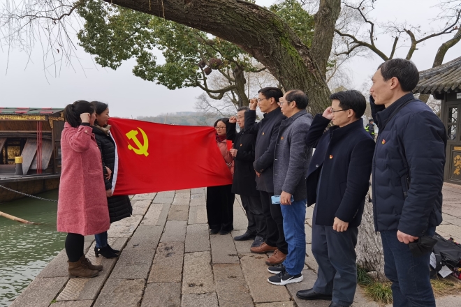 2021年1月27日,为庆祝中国共产党诞辰100周年,江南在线学院行政党支部党员和部分教师一行12名前往嘉兴南湖开展了“瞻红船、忆初心”的主题党日活动。
