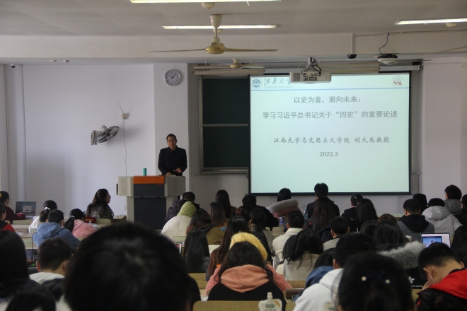 其后,马克思主义学院张祖辽教授为大家带来开班第一讲:《共产党宣言》导读。他以为何要读《共产党宣言》为起点,明确指出:共产主义是马克思主义的落脚点。政治教育的两个目的是培养人的公民意识和民族意识。张教授深入浅出的分析让同学们对共产党员的标准和共产党人的宗旨有了进一步的深刻感悟和理解。在短暂课间休息后,马克思主义学院刘大禹教授为学员们展开第二讲:《以史为鉴,面向未来:学习习近平总书记关于“四史”的重要论述》 。刘教授谈到了自己去台湾的经历感受,深切体会了学习四史的重要性和必要性。四史是党史,国史,改革开放史,社会主义发展史。学习四史,党史是核心。刘教授提到了三个学习四史的重点:总结历史经验,推进革命和改革经验;吸收历史养料,建设社会主义现代化强国;肩负历史使命,实现伟大中国梦。