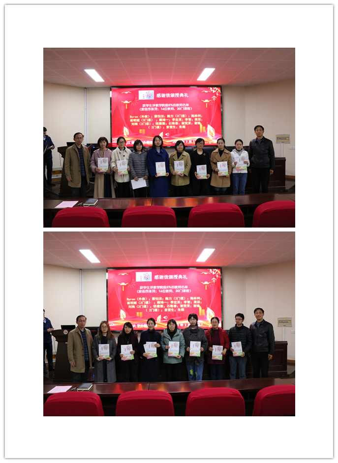 会上还举行了江南在线学院“师德建设月”主题活动,史志洪、方文开同时为获得2020年度学生评教学院前5%的16位老师颁发了感谢信,以此激励全院教师不忘教育初心、牢记育人使命。