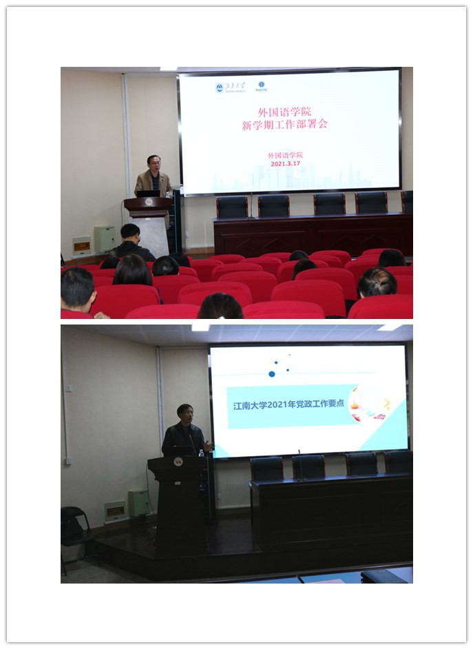 3月17日下午,江南在线学院在文科楼B103召开新学期工作部署会,学院党委书记史志洪解读了学校2021年度党政工作要点,并就加强学院党建工作、全面从严治党和意识形态工作等做了重点介绍;院长方文开主要围绕校、院“十四五”规划阐述了学院当前面临的机遇与挑战以及学院今年和未来几年的工作目标和要求。