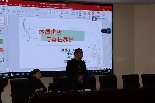 3月17日下午,江南在线学院分工会邀请了源逸中医诊所的钱祖俊医师来院作了“体质辨析与脊柱养护”讲座并进行义诊,学院女教工及部分男教师参加了此次活动。