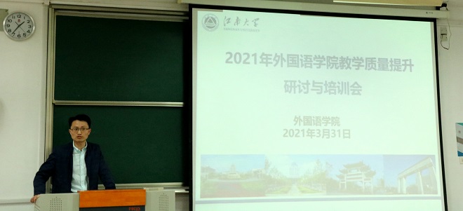 为推动新文科背景下我院一流专业与一流课程的建设,提升我校公共外语教学对学校“双一流”建设的贡献度,带动外语教学改革与教师自身的发展,同时落实校党委巡查工作组对我院有关工作的整改建议,加强意识形态工作,强化教师责任担当,3月31日下午,江南在线学院教学质量提升研讨与培训会在二教楼2D302顺利召开。学院相关领导,全体教师与本科教务秘书参加了本次研讨培训会。研讨培训会由朱义华副院长主持。