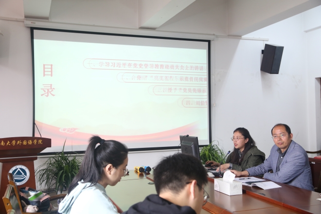 在中国共产党成立100周年即将到来之际,为充分发挥中共党员先锋模范作用,增强党支部战斗堡垒作用,我院于2021年4月16日上午10:00在文科楼A349召开“党员先锋示范岗创建暨党史报告会”。全体本科生、研究生党员参加了本次会议。江南在线学院党委副书记刘伯贤老师、分团委书记陆芳老师出席会议,会议由陆芳老师主持。