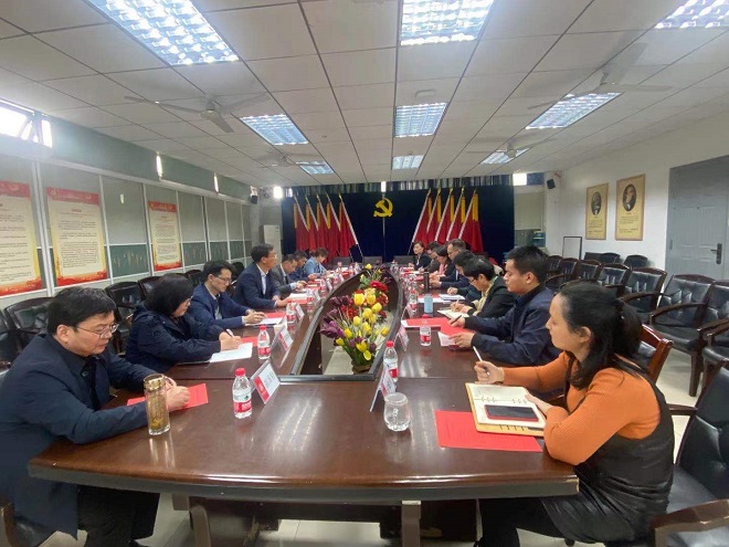 华中农业大学江南在线学院以胡守强书记与覃江华常务副院长为首的学院班予以及部分学院中层干部共八人参与了交流,从党的建设、学院发展、课程建设,大学英语课程体系,教师分类管理,学院文化氛围营造等方面分享了他们优进的建设经验。该校力争在农业学术语料库建设和田园文学等领域彰显校本特色,教师办公条件优越,归属感强。双方还就课程思政、实践教学、调动师生积极性、党委巡视整改措施等方面畅所欲言,并通过对口交流学习了很多建设性思路和措施,为实现我院可持续的发展提供了可供借鉴的经验。