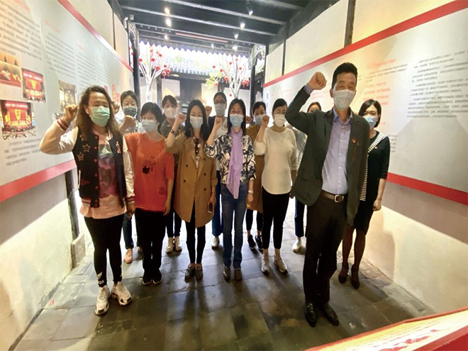 5月17日,江南大学江南在线学院拓展部党支部开展“访新四军苏浙军区旧址 忆江南小延安峥嵘岁月”学党史百年主题党日活动,拓展部支部书记邢嘉锋老师带领全体拓展支部党员教师和部分拓展部教师一同前往新四军苏浙军区纪念馆参观学习。