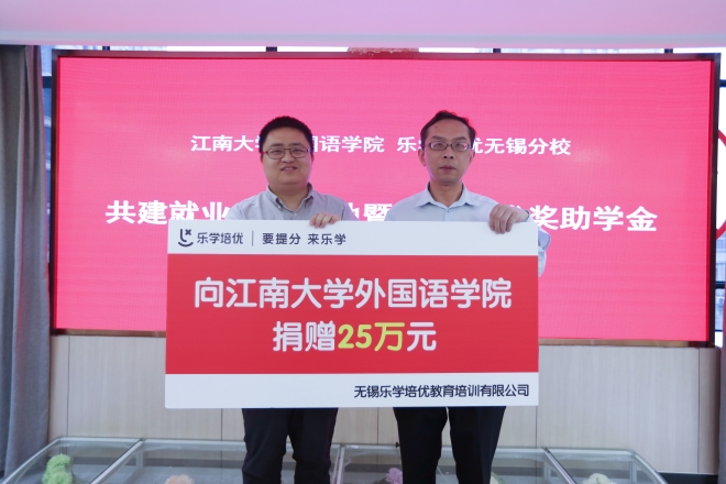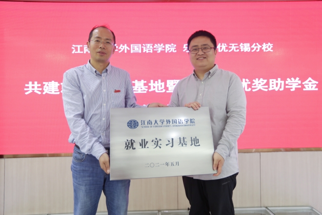 会议最后,双方举行了江南大学江南在线学院与乐学培优无锡分校共建就业实习基地暨奖助学金签约仪式,学院党委副书记刘伯贤代表学院向乐学培优授予“就业实习基地”铜牌。