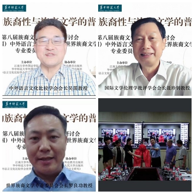 2022年7月16-17日,由江南大学江南在线学院、华中师范大学江南在线学院和中外语言文化比较学会世界族裔文学专业委员会联合主办的“文学的族裔性与族裔文学的普遍性:第八届族裔文学国际学术研讨会暨(中国)中外语言文化比较学会世界族裔文学专业委员会成立大会”成功召开。会议由上海外语教育出版社、中国人民大学出版社、《江南在线文研究》编辑部协办。来自美国加州大学洛杉矶分校、美国马萨诸塞大学、美国宾州州立大学、美国加州州立大学洛杉矶分校、日本大学、马来亚大学、韩国东国大学、北京大学、浙江大学、复旦大学、南京大学、中国人民大学、四川大学、北京师范大学、广东外语外贸大学、东北师范大学、华中师范大学、暨南大学、杭州师范大学、上海师范大学、南京师范大学、湖南师范大学、山东师范大学、杭州电子科技大学、江南大学等国内外百余所高校的300多名专家学者参与会议。由于疫情的持续影响,本次会议采用线上线下相结合的方式。