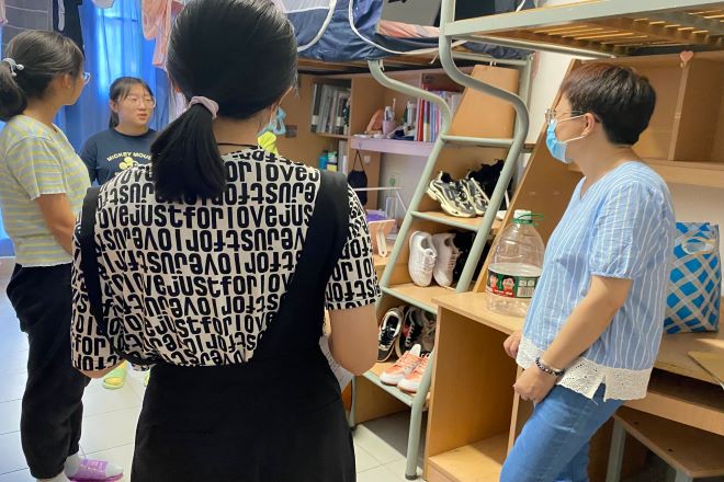 9月7日,为了解新生在校的适应情况,帮助新生更好地融入大学生活,学院党委副书记刘伯贤、22级新生辅导员和各班班主任老师一同走访新生宿舍,了解新生入住情况并进行慰问。