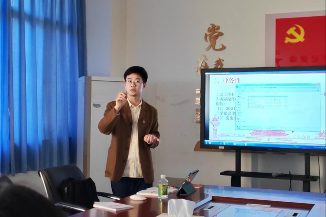 最后,张龙飞同学就自己多年担任党支书的经历向党员同志们分享了提升个人业务能力的途径与方法。作为党支书和党支委,组织策划、协调沟通、公文写作的能力必不可少。除此之外,张龙飞同学还提到,理论素养是一个年轻党员干部最根本的本领,提高党员理论素质必不可少。