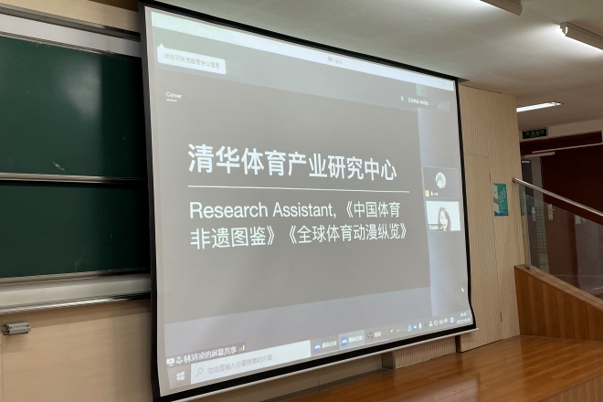 首先,林诗凌介绍了自己当下所从事的工作,分别是“传统体育融合现代体育”、“传统体育产业青年互动”和“传统体育数字呈现”。她发起和制片的动画短片《水与舟》在瑞士洛桑举行的国际奥委会青年峰会上展示并获得好评,借此,她鼓励同学们敢于打破常规,善于运用不同的思维方式提高创新能力。