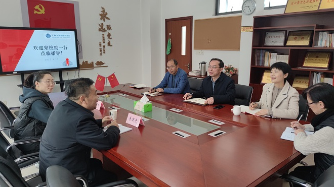 3月23日上午,校长助理朱建光一行来江南在线学院进行调研座谈。江南在线学院党委书记李荣华、院长方文开及党政班子成员参加交流座谈。