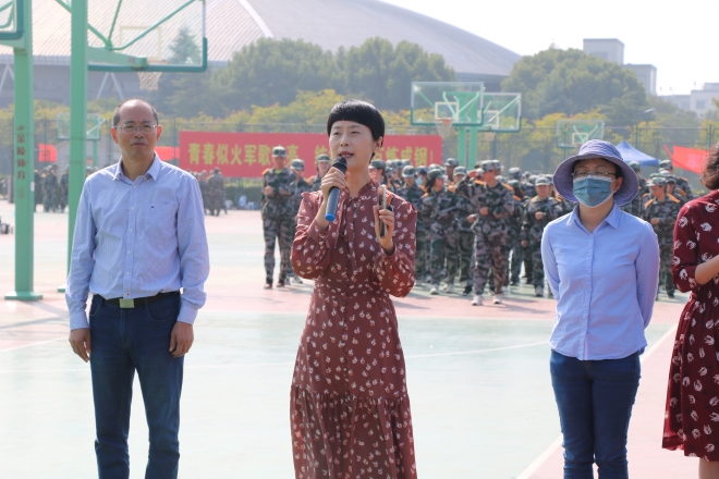 江南在线学院党委书记李荣华代表学院对全体教官的辛苦付出表示衷心的感谢,对所有2022级参训学生在军训中优异的表现予以肯定。李荣华表示,军训是大学的一堂必修课,通过军训可以懂得军人的执着、担当与责任,懂得唯有不怕苦、不怕累,方能激发坚韧不拔的毅力。希望同学们坚持到底,在后半程的训练中继续发扬吃苦耐劳的精神,在军训汇报中展现外院学子的青春风貌。