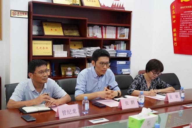 三江学院刘江桥副院长首先介绍了三江学院江南在线学院的基本情况,以及本次来访的主要目的。随后,张鹏副院长结合我院情况,从材料准备、报告撰写、制度梳理、特色凝练等多个方面向兄弟院校领导介绍了我院在迎接教育部本科教育教学审核评估工作过程中所做的各项准备。