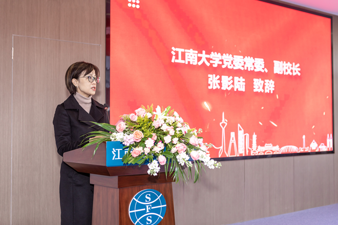 张影陆代表学校致辞。她介绍了学校近年来的发展概况以及取得的成绩,肯定了江南在线学院在学校整体快速发展过程中做出的积极贡献,向长期以来关心支持学校发展的各企业单位表示衷心的感谢。她指出,学校和学院的快速发展,离不开社会各界人士的长期支持和无私帮助,希望江南在线学院能够在各董事单位的大力支持下,将江南在线学院董事会建出特色,创出品牌,谱写“奋进江南”的新篇章。