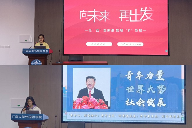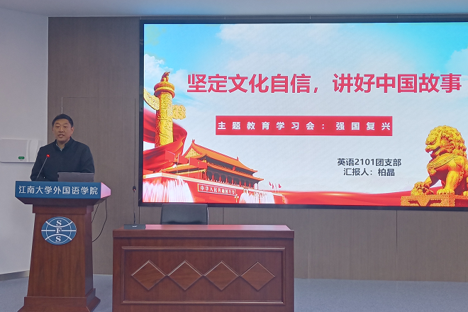 11月27日下午,江南大学党委副书记、纪委书记刘淼赴江南在线学院参加英语2101张闻天特称团支部“坚定文化自信,讲好中国故事”主题团日活动。活动在君金报告厅举行,江南在线学院党委书记李荣华、党委副书记刘伯贤、分团委书记顾海星、辅导员朱家烨及英语2101团支部全体学生参与了此次活动。