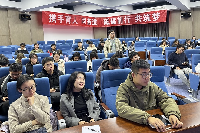 同学们就时代热点问题、团学工作实际中遇到的困惑和不解展开了热烈交流。周赟博士悉心解答,并向同学们阐释了新时代“新”的内涵和新青年“斗争”的含义。周赟博士的讲解深入浅出,同学们受益匪浅。