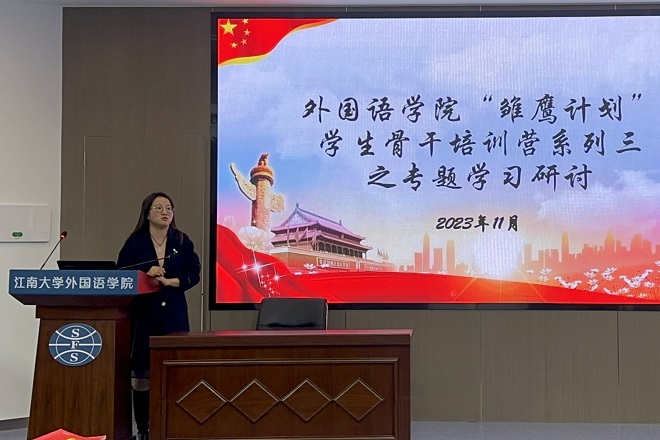 为进一步学习贯彻习近平新时代中国特色社会主义思想和党的二十大精神,认真落实习近平总书记关于青年工作的重要思想,加强团学骨干队伍建设,江南在线学院分团委于2023年11月30日下午在君金报告厅开展了“雏鹰计划”团学骨干培训营之专题学习研讨活动。参与本次活动的有马克思主义学院副教授周赟博士、新发展党员、团学骨干以及雷锋特称团支部全体团员。会议由分团委书记顾海星主持。