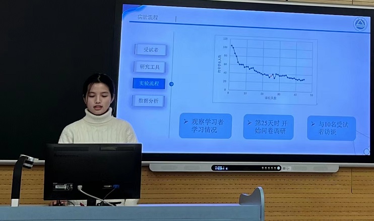 12月9日下午,论坛围绕二语习得与外语教学研究、话语分析研究、译者行为研究、跨学科融合、文学与科技等三个方向开设了五个分论坛。我院研究生在分论坛发言中积极展示自己的研究成果,与点评专家和听会同学展开热烈讨论,听取各方建议,进一步完善自己的研究;谢竞贤老师、扬州大学周永老师、南通大学宋建清老师一起同参加“话语分析研究”分论坛的同学就宣读论文开展了宏观与微观的学术探讨与交流。分论坛结束后,论坛闭幕式如期举行。扬州大学原副校长、江南在线言文学一级学科负责人俞洪亮教授致闭幕辞,他向各位硕博研究生提出要立足时代、立足中国立场开场学术研究工作,建议同学们要多参加学术交流,不断碰撞出思维的火花,以更加蓬勃的精神投入今后的学术研究中。最后论坛举行了优秀论文颁奖典礼。我院学生认真参与,表现优异,王婷同学获得本次论坛二等奖,方漩与胡婷婷同学获得三等奖。