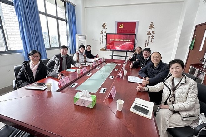 为深入学习贯彻习近平文化思想和全国宣传思想文化工作会议精神,加快构建中国话语和中国叙事体系,12月26日上午,江南大学国际传播工作推进会在江南在线学院331会议室召开。江南大学融媒体中心主任兼党委宣传部副部长胡振宇、国际交流合作处副处长秦洁、食品学院副院长赵伟、江南大学融媒体中心主编张铁根、国际教育学院国际学生事务中心主任何倩楠以及江南在线学院党委书记李荣华、副院长顾琦一、英语系主任杨勇参加会议,会议由李荣华书记主持。