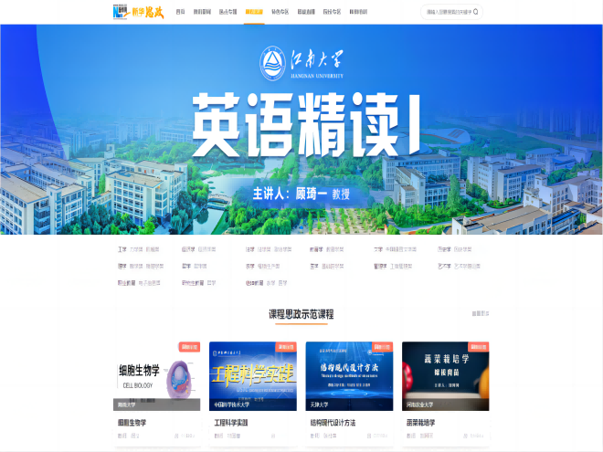 近日,江南大学江南在线学院顾琦一教授团队《英语精读I》和谢瑜副教授团队《口译技巧与实践》两门课程的课程思政教学案例上线新华网“新华思政”平台,面向全社会开放共享教学设计、教学视频、教学课件、说课视频等教学资源。