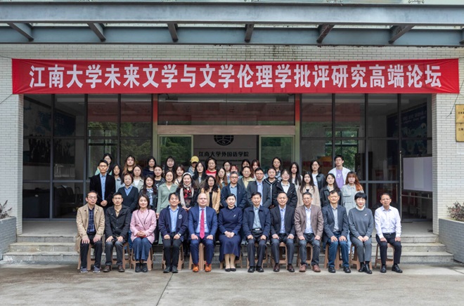 2024年4月12日,由江南大学江南在线学院、广东外语外贸大学未来人文实验室、浙江大学世界文学跨学科研究中心主办,《外国文学研究》《山东外语教学》《江南在线文研究》《江南大学学报(人文社科版)》杂志编辑部、外语教学与研究出版社、高等教育出版社协办的“未来文学与文学伦理学批评研究高端论坛”在江南大学江南在线学院成功召开。江南大学党委副书记刘淼、广东外语外贸大学/浙江大学教授聂珍钊、华中师范大学教授苏晖、浙江大学教授杨革新、上海交通大学教授尚必武、复旦大学教授Sandro Jung、华中师范大学教授罗良功、宁波大学教授王松林、山东师范大学教授王卓、广东外语外贸大学教授张欣、广东外语外贸大学教授刘茂生、华中科技大学教授陈后亮等众多国内外知名专家学者共同出席了论坛。开幕式由江南大学江南在线学院院长方文开主持。